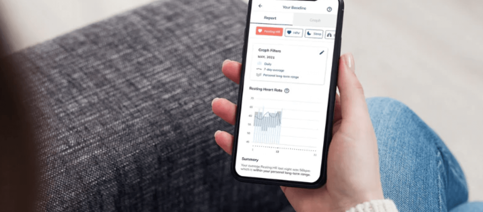 By continuously wearing your Skiin biosensing garment, you will collect and visualize what we call your Baseline Summary Report: a visualization of your health over various lengths of time. Viewable within the Skiin Connected Life App, your summary represents your past and current health states and trends. These summaries help you interpret your health over various lengths of time, and serve as a starting point that allows you to understand your unique health and wellness. Your Baseline Summary Report comprises three parts: your Daily Value, &-Day Average, and 30-Day Personal Long-Term Range.